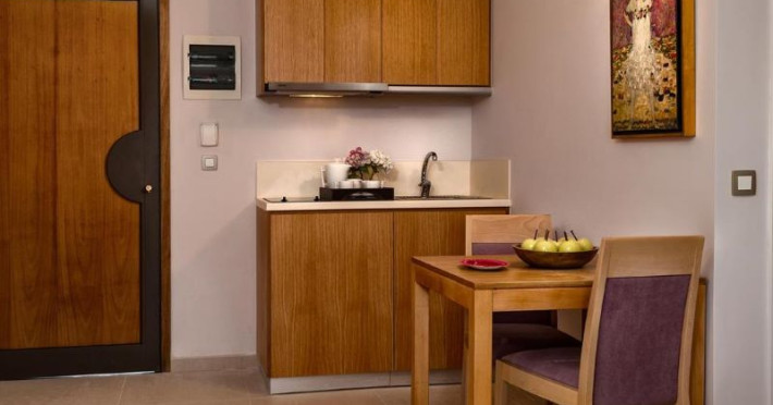 Fiecare cameră este dotată cu o chicinetă, un ceainic electric, un filtru de cafea, aer condiționat, seif gratuit, telefon direct, conexiune Wi-Fi gratuită, mini-frigider, televizor prin satelit, baie cu cadă/duș, uscător de păr și balcon/terasă.