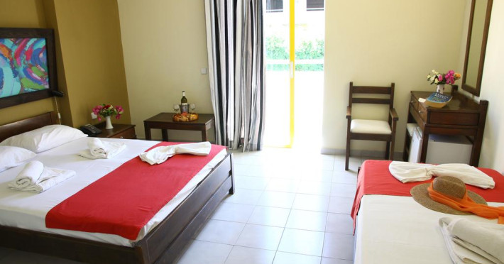 În camere există baie cu cadă sau duș ce are în dotare foehn și articole de toaletă gratuite. Camerele confortabile de la Porto Plazza au pardoseală de gresie/ marmură, aer condiționat, Tv cu canale prin satelit și seif. Fiecare cameră dispune de cană pentru prepararea apei calde. Oaspeții pot solicita serviciul de room service pentru a servi masa sau diverse băuturi. Unele camere au balcon cu vedere la grădină sau la piscină. Toate camerele spațioase de la Porto Plazza au zonă de relaxare cu canapea, ceea ce oferă un plus de confort. Fiecare unitate de cazare are frigider. Proprietatea oferă camere pentru nefumători.