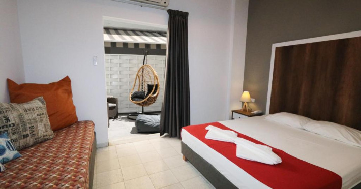 Porto Plazza Hotel is a modern style hotel situated in the center of Hersonissos Town, only 250 meters from a Beach, and 25 Kilometers from the Cretan Capital Heraklion and the airport .