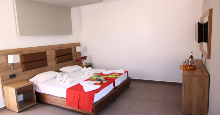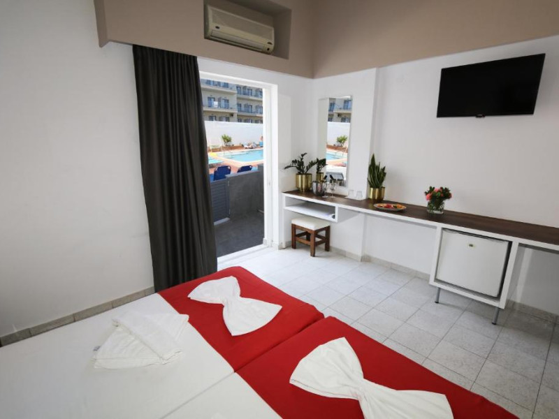 The Hotel has its own Bar which offers a Casual Atmosphere in a Light and Modern Setting. Guests can relax by The Pool or on the Sun Terrace during the day. For the Active Visitor, The Beach offers Jet-skiing and Parasailing, the way to star beach water park is only 2 kilometers away, or the Inland Mountains are great for a Jeep Safari.