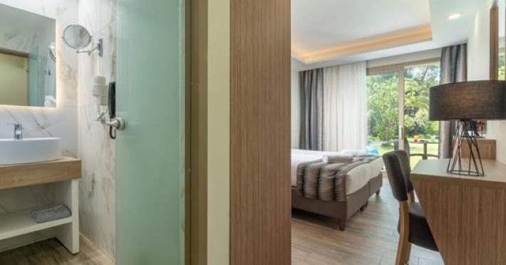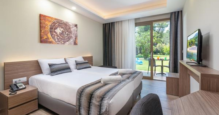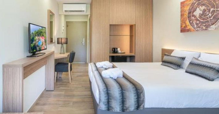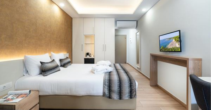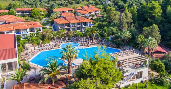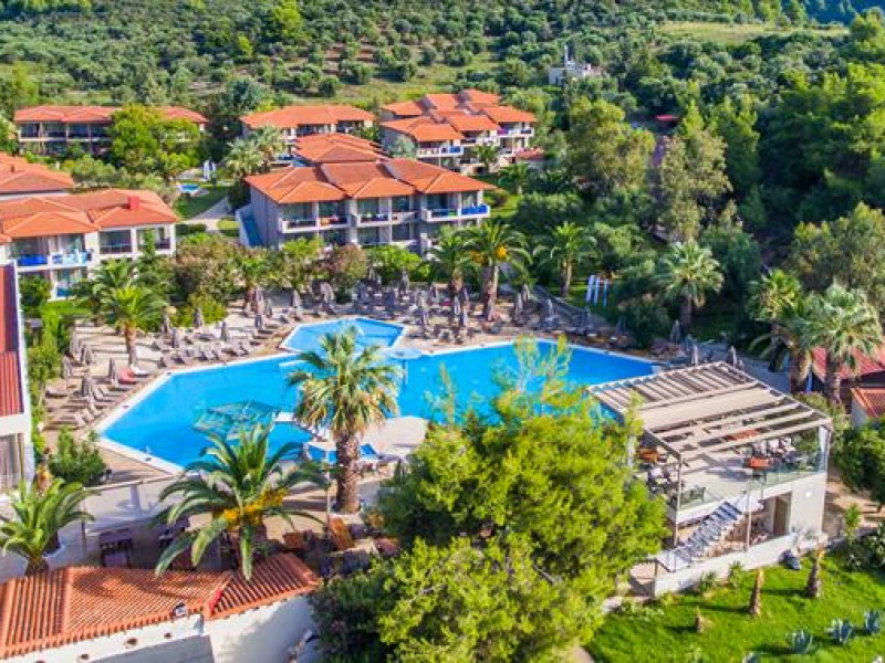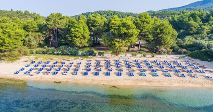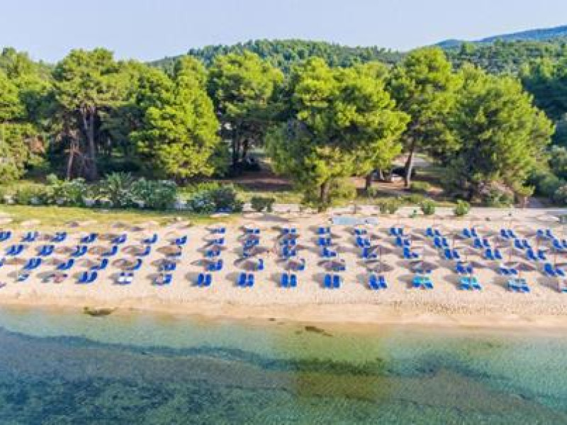 Renovated in 2018, in a unique location surrounded by pine trees, the hotel is on a sprawling verdant garden of 24 acres. It is located 10 km from N. Marmaras and 60m from the bach. The resort consists of 11 neighboring buildings plus the main building ( Reception, Main Restaurant, Main bar ).Full description