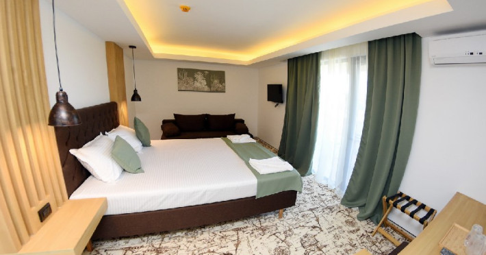 Dotari camere etaj: TV, telefon, internet WiFi, welcome minibar, aer conditionat, balcon. Toate camerele au baie proprie cu dus.