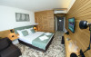 Camere duble King, cu o suprafata aproximativa de 23 mp, vedere spre padure si lac, pat matrimonial de 180x200 cm si o canapea extensibila, baie proprie cu dus, TV, telefon direct, internet, minibar, aer conditionat, balcon generos.