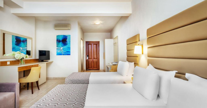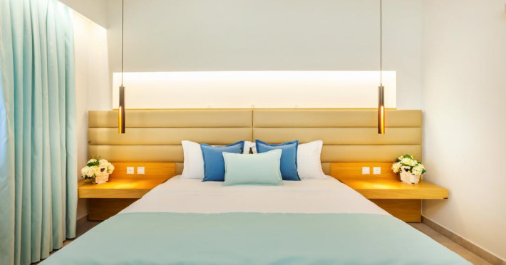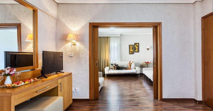 Camerele luminoase de la Poseidon Palace sunt dotate cu gresie sau parchet, aer condiționat, Tv și seif. În camere există baie cu cadă sau duș ce are în dotare foehn și articole de toaletă gratuite. Oaspeții au la dispoziție serviciul de room service pentru a servi masa sau diverse băuturi. Unele camere au balcon cu vedere la mare sau la piscină. Oaspeții au acces gratuit la serviciul Wi-fi în camere. Curățenia in cameră se face zilnic. Toate camerele spațioase de la Poseidon Palace au zonă de relaxare cu canapea, ceea ce oferă un plus de confort. Fiecare unitate de cazare are frigider. Proprietatea oferă camere pentru familie cu o suprafață mai mare și un număr mai mare de paturi față de cele standard.