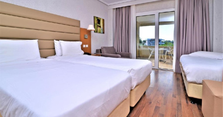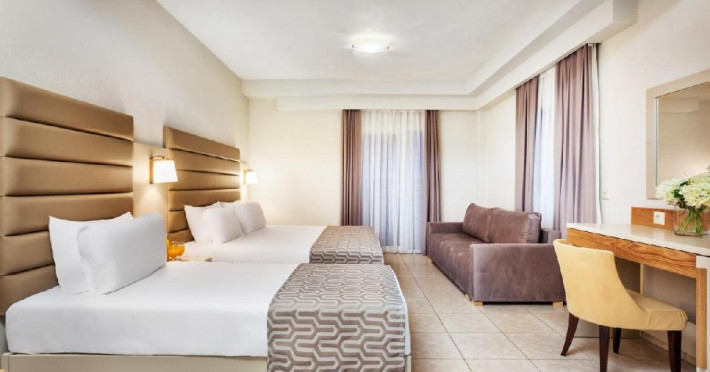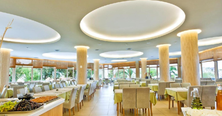 Facilitati hotel: piscina exterioara, restaurant principal, taverna, bar principal, pool bar, beach bar, sala de fitness, masaj, jacuzzi, sauna umeda, sala de festivitati, sala de conferinte, teren de tenis, teren de fotbal, teren de volei, mini golf, teren de joaca, mini club, disco club, animatie, magazin de bijuterii, minimarket, receptie deschisa 24 de ore, internet wi-fi, spalatorie, loc de depozitare a bagajelor, servicii rent a car/bike, shuttle (de 2 ori pe zi), sezlonguri & umbrele la piscina - gratuit, sezlonguri & umbrele la plaja - contra cost, activitati sportive: aerobic, gimnastica de inviorare, biciclete, scoala de scufundari, windsurfing, waterski, pescuit, canoe, banana, barci si surf, parcare.