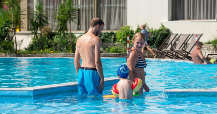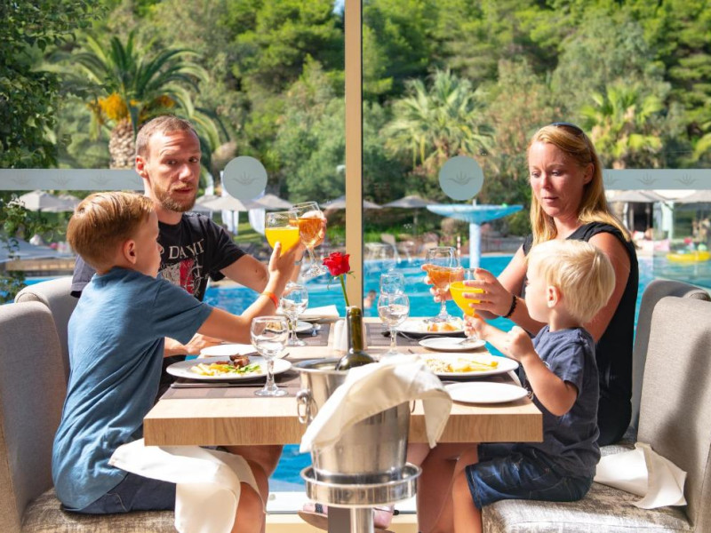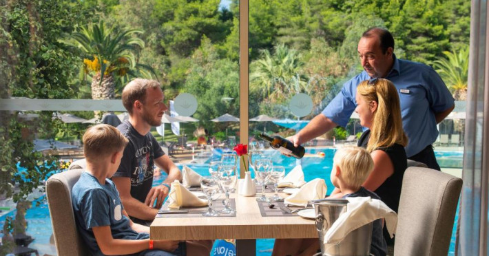 Hotelul dispune de plajă privată cu nisip și pietriș, amenajată cu umbrele și șezlonguri pentru oaspeți. Pentru cei activi, există teren de tenis, sală de fitness și centru de sporturi nautice. Seara, barul de la piscină oferă cocktailuri și muzică live intr-o atmosferă relaxată.