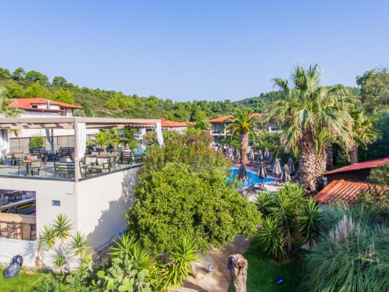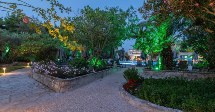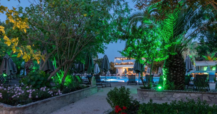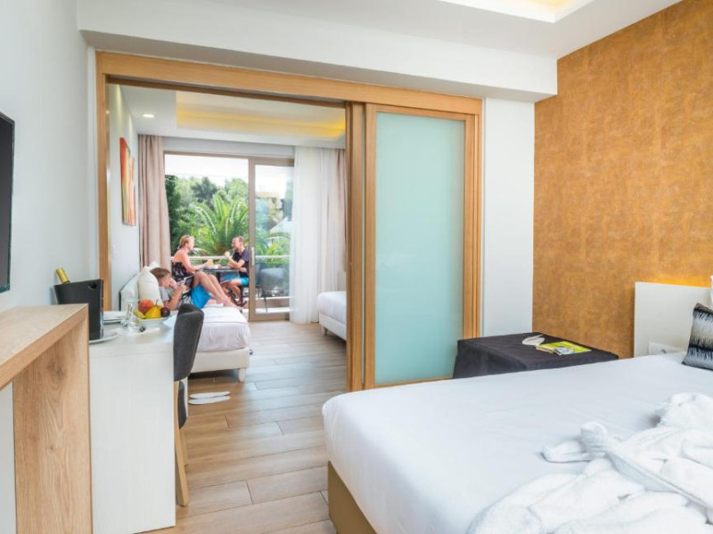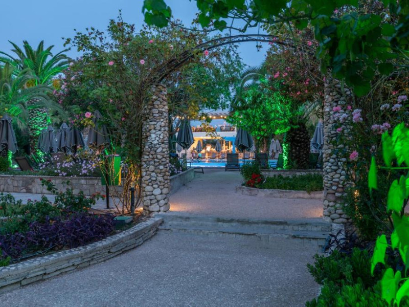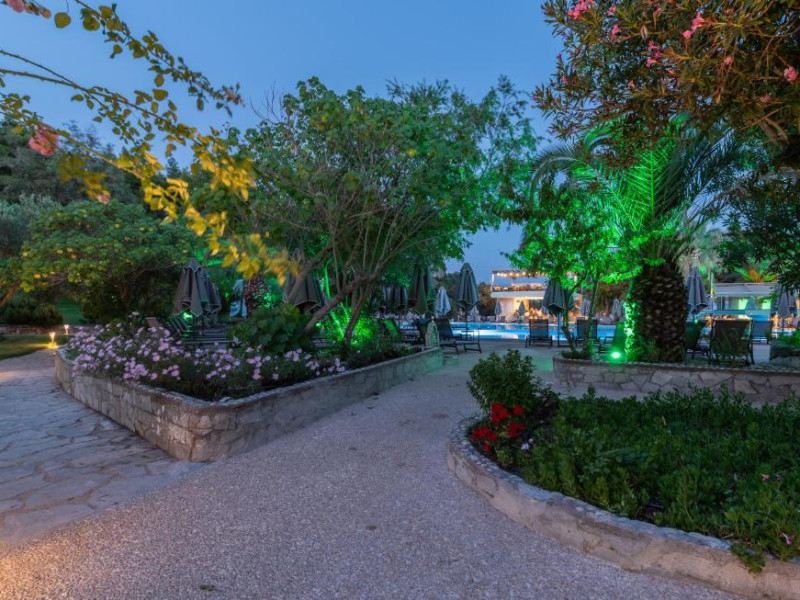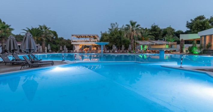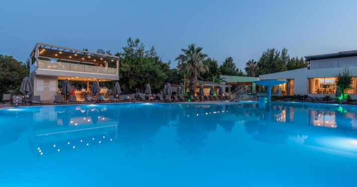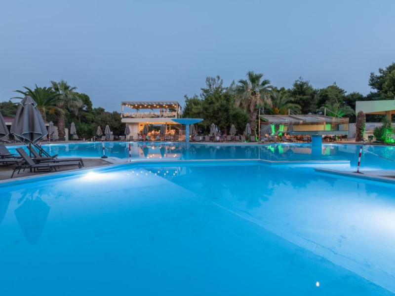 Camerele elegante sunt dotate cu aer condiționat, TV satelit, mini-frigider și balcon cu vedere spre mare sau grădină. Oaspeții se pot bucura de două piscine in aer liber, inconjurate de șezlonguri și umbrele, precum și de un restaurant principal cu preparate grecești și internaționale.