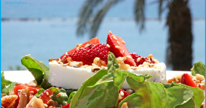 La Poseidonia Beach Hotel oaspeții au la dispoziție 2 restaurante unde pot savura mâncăruri delicioase, în stil bufet sau à la carte. Preparate din bucătăria internațională așteaptă să fie degustate în fiecare zi la micul dejun, prânz și cină. Masa poate fi servită atât în interior, cît si în aer liber, pe terasă, în funcție de vreme. Oaspeţii pot avea diverse băuturi răcoritoare sau alcoolice la bar. De asemenea , în cadrul proprietății, există cafenea și snack bar ideale pentru o gustare rapidă. Pentru cei cu anumite nevoi de nutriție, Poseidonia Beach Hotel oferă meniuri pentru diete speciale.