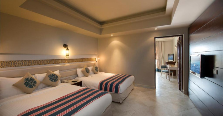 Complexul impresionează prin arhitectura in stil arab-mediteranean și grădinile luxuriante care inconjoară piscinele. Camerele sunt decorate in nuanțe calde, specifice designului local, și oferă vedere spre mare sau grădini.