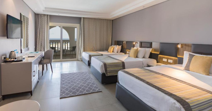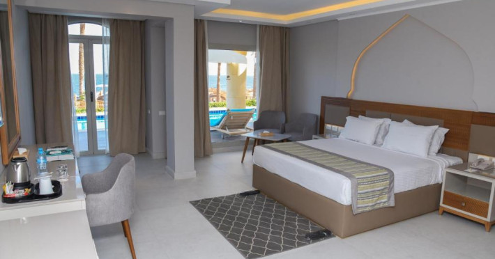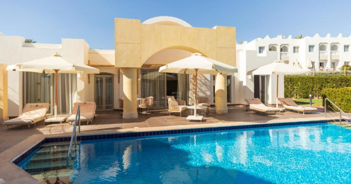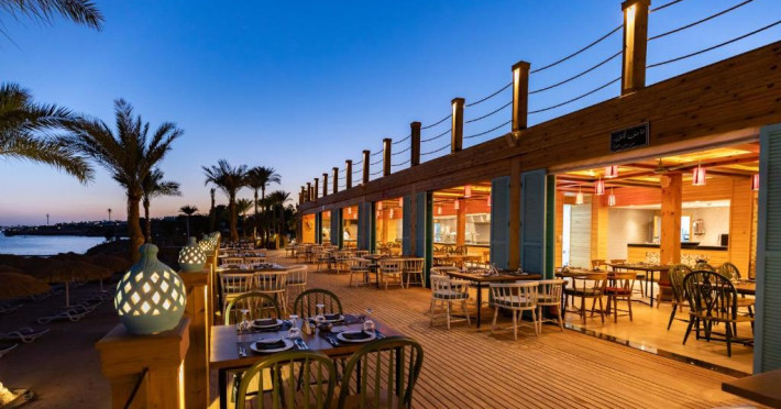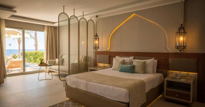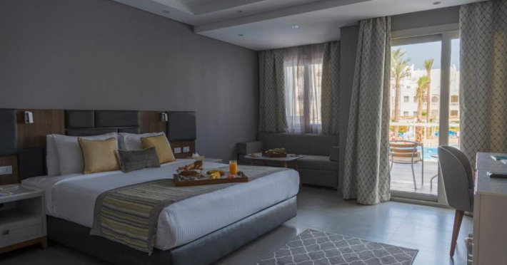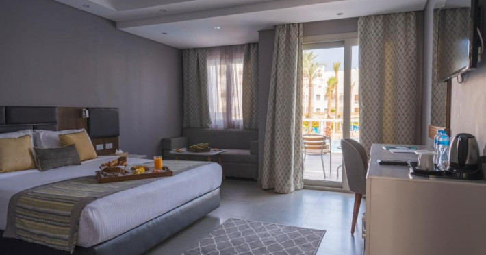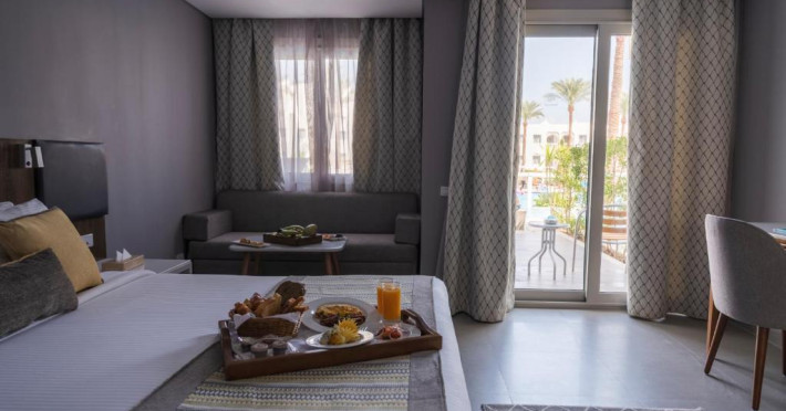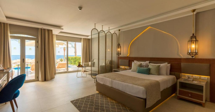 The resort offers a spa and fitness center and an international diving center, where you can explore the colorful reefs and exotic fish of the Red Sea.