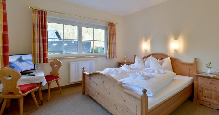 All rooms are furnished in Tyrolean style and feature a flat-screen cable TV and a bathroom. In the morning, a rich breakfast buffet with many regional products is served. Half board can be booked on site against a surcharge and is served at a neighbouring hotel.