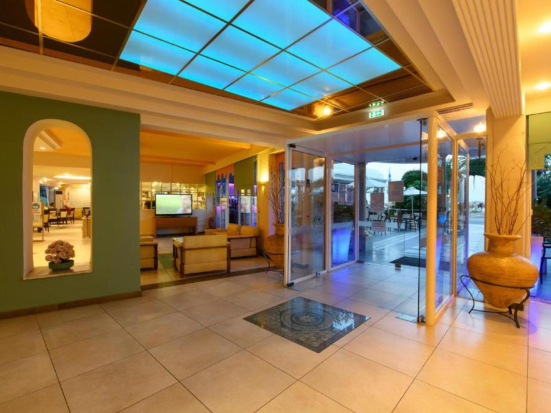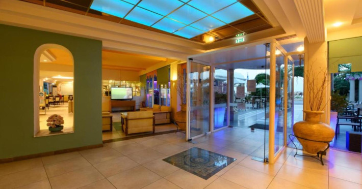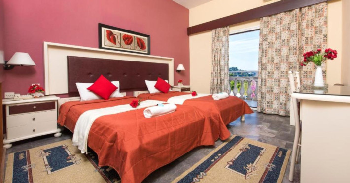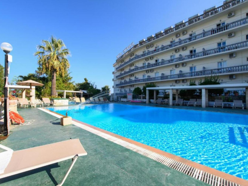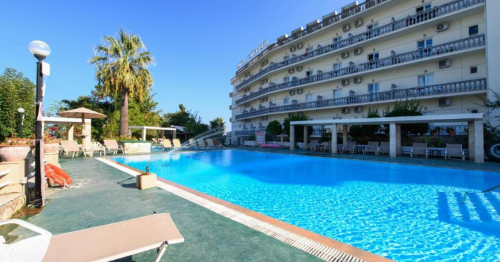 Potamaki Beach Hotel enjoys a beachfront location in Benitses village, in Corfu. Guests can enjoy the fresh-water swimming pool with large pool terrace equipped with umbrellas, sun beds and showers. Also available is a pool for children.The 5-storey building has 170 simply decorated rooms, most of which are sea-view. All rooms are equipped with satellite TV sets and refrigerators.