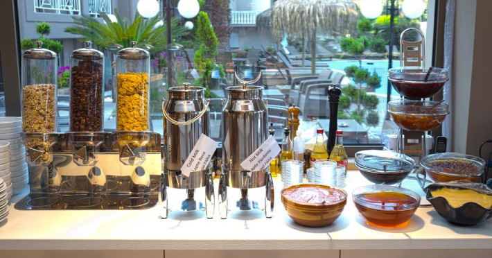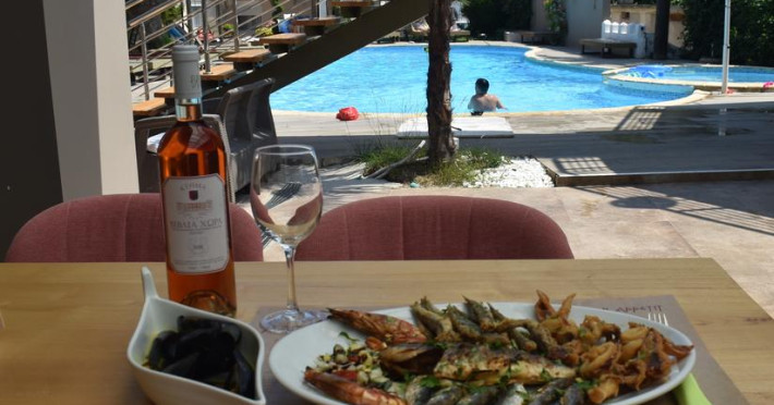 La Potos Hotel oaspeții au la dispoziție un restaurant care servește mâncare à la carte. Preparate din bucătăria grecească așteaptă să fie degustate în fiecare zi. Masa poate fi servită atât în interior, cît si în aer liber, pe terasă, în funcție de vreme. Oaspeţii pot avea diverse băuturi răcoritoare sau alcoolice la bar.