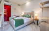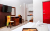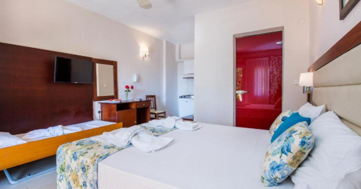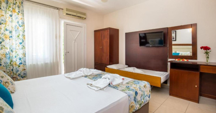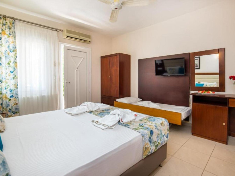 Air conditioning and central heating ensure that rooms maintain comfortable temperatures. Guests can enjoy the garden view from a balcony or terrace. Rooms have a double bed, a queen-size bed or a sofa bed. Extra beds can be requested. Amenities include a refrigerator, a TV, a safe and WiFi (no extra charge). Bathrooms are equipped with a shower and a hairdryer. The hotel has family rooms and non-smoking rooms.