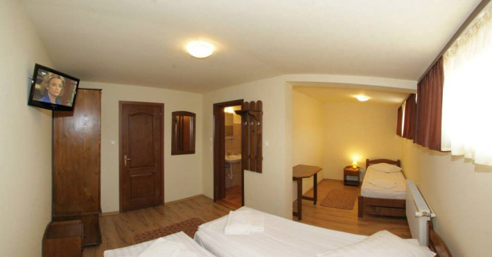 - Dotari camere/ apartamente: Grup sanitar propriu (cabina dus, lavoar, toaleta), paturi individuale/ matrimoniale, televizor LCD/ LED a cablu TV, acces Internet Wireless (Wi-Fi), mini-frigider, balcon (numai la camerele DBL), ferestre termopan, incalzire centrala (in sezonul rece). Niciun tip de camera NU dispune de AER CONDITIONAT!