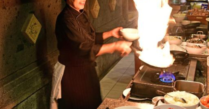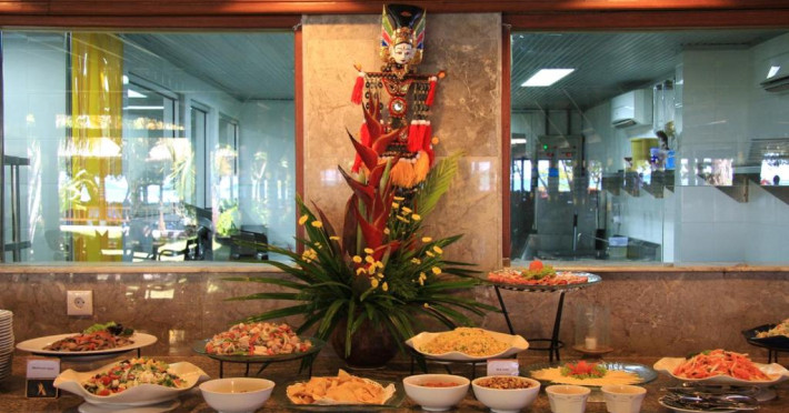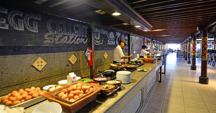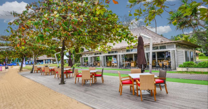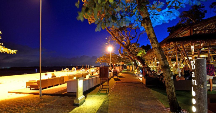 Restaurantul Tirta de langă piscină oferă preparate internationale si fructe de mare la grătar. Optiunile de luat masa includ Basilico Italian Pavilion & Bar, Restaurantul Lada si Bamboo Beach Bar.