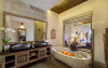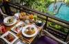 Experiență culinară: Restaurantul romantic servește preparate din bucătăria indoneziană și internațională, cu opțiuni de mic dejun continental, american, à la carte, vegetariene și fără gluten. Oaspeții se pot bucura de brunch, pranz, cină, high tea și cocktailuri intr-un cadru relaxant.