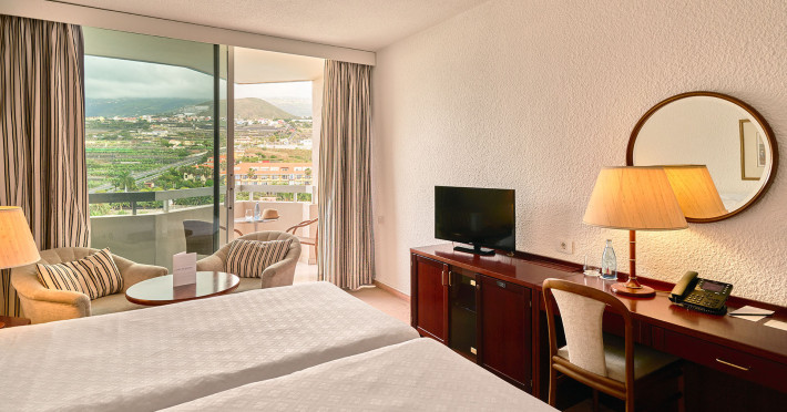 The 4 star hotel Precise Resort Tenerife is located approximately 500 m from a beach. The nearest bars and restaurants can be found at a distance of around 500 m. The old town is around 2 km away. To reach the beach a shuttle is provided. The seasonally air-conditioned hotel is equipped with a 24h reception (check-in is possible around the clock), a lobby, Wi-Fi, internet access, a lift, a supermarket, a hairdresser, a first aid kit as well as parking spaces (limited and for a fee). In the outdoor area you will find a garden as well as a heated pool (open all year), where you can rent pool towels for a fee and sun loungers and sun umbrellas are available for free. There is also a separate children's pool. Furthermore, outside you can find a sun terrace. You can store your valuables in the safe, and your luggage in the hotel`s storage room. For your entertainment, the hotel offers a library/reading room. For very young guests, kid`s chairs, highchairs and cots can be provided. There is also a laundry service. If necessary, you can contact the medical centre. For conventions and other business meetings, the hotel offers a business centre as well as a conference area. If you want to explore the holiday region, you can use the car rental service close to the hotel. In addition, the hotel sells tickets for excursions. For guests on their honeymoon, the hotel has special offers such as special honeymoon packages. Due to its barrier-free facilities , such as barrier-free entrances, wheelchair accessible rooms and wheelchair-accessible bathrooms, the hotel is also suitable for wheelchair users. Catering As catering services the hotel offers half board. Breakfast is offered from the buffet. Enjoy your lunch from the buffet or à la carte. Dinner is also served as a buffet. For the meals, there are a restaurant with terrace and 2 bars, the cafeteria as well as the pool bar. A picnic bench can be used by guests for self-catering. Distances- Discotheque: approximately at 2 km