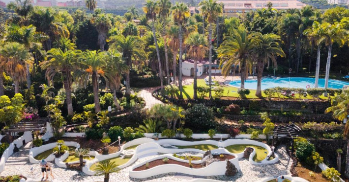 Plimbați-vă prin grădinile fabuloase ale Precise Resort Tenerife și admirați plantele și florile exotice. Relaxați-vă cu o siestă de după-amiază sub palmieri și admirați peisajul excelent in timp ce jucați tenis sau minigolf pe terenul de golf elaborat conceput.