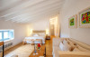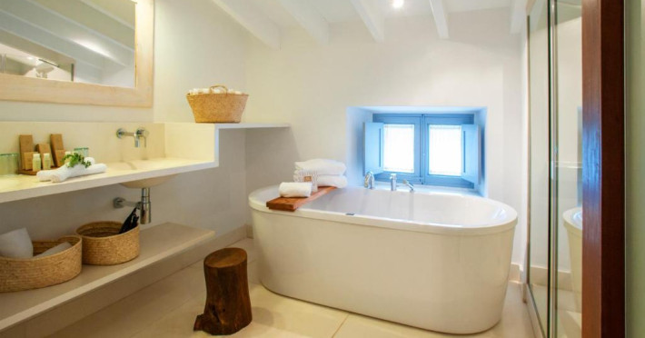 Suitele Hotelului Rural Predi Son Jaumell au decor rustic elegant. Fiecare are minibar și baie privată cu halat de baie, papuci și cadă spa.