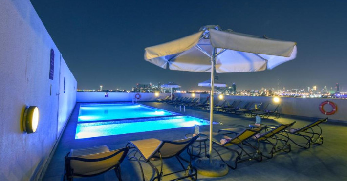 Piscina in aer liber și cada cu hidromasaj de pe acoperișul hotelului au o terasă de mari dimensiuni, potrivită pentru relaxare, cu vedere panoramică la centrul orașului Dubai, la Aeroportul Internațional, precum și la alte atracții. Alte facilități convenabile includ o sală de gimnastică deschisă non-stop, recepție cu program non-stop, o sală de conferințe și servicii de spălătorie, inclusiv servicii expres.