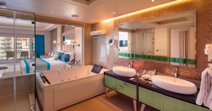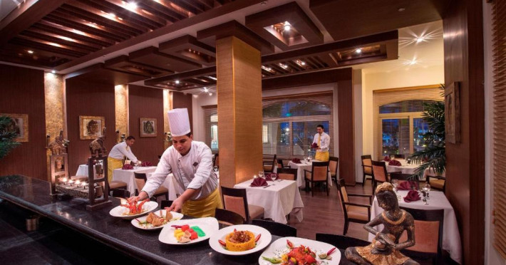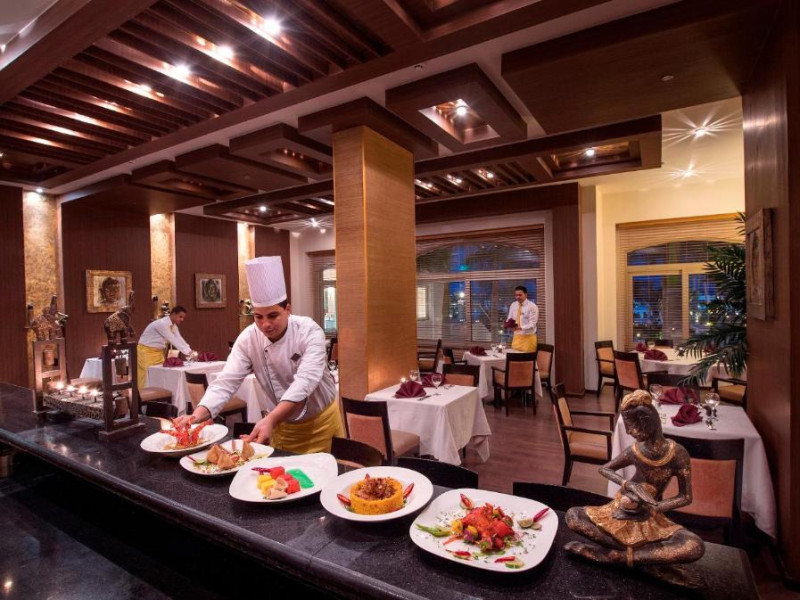 Optiunile de luat masa includ restaurante cu specific italienesc, chinezesc si japonez, precum si specialităti din fructe de mare. Barul hotelului, Long Bar, are o bibliotecă, mese de biliard si un ring de dans. Barul de vitamine oferă sucuri sănătoase. Restaurantul principal Turquoise servește preparate din bucătăria internațională, cu tematică zilnică diferită.