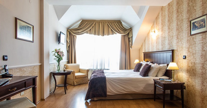Camere spatioase si confortabile decorate in stil contemporan, ofera o vedere superba catre orasul Bansko si dispun de o zona de relaxare, mini bar, ceainic si cafetiera, LCD TV cu programe prin satelit, aer conditionat, seif, balcon, uscator de par. Oaspetii se pot bucura si de facilitati precum halate de baie, papuci de casa si articole de toaleta gratuite. Grad de ocupare: 2 adulti + 1 copil (31-41m²).