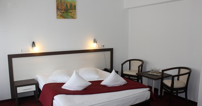 Hotel President 3 * is located 500 meters from the sulfur springs and about 500 meters from the bus station. Hotel facilities: 14 rooms with twin, 9 rooms with double bed and 2 apartments in standard category, 13 rooms with double bed and one apartment in deluxe category. The expansion of the hotel brought 14 new **** rooms, modern and spacious, together with a spa, swimming pool, sauna, jacuzzi and a new restaurant with 120 seats, terrace with 20 seats, a treatment base with the most modern treatment equipment for: physiotherapy, thermotherapy, hydrotherapy, a conference room with a capacity of 120 seats with state-of-the-art equipment, free private parking, SPA Center (swimming pool, sauna, jacuzzi and modern weight loss and body shaping equipment). Room facilities: LCD TVs, balcony, dressing room, minibar, air conditioning, free wireless internet, direct dial telephone, jacuzzi, bidet, bathrobe, slippers, dryer in the bathroom, room serviceDatorita dinamicitatii domeniului disponibilitatea ofertelor se modifica de la un moment la altul. De aceea ofertele sunt valabile in limita locurilor disponibile. Agentia nu este responsabila pentru eventualele neconcordante care pot aparea intre informatiile privind tarifele si alte detalii din site si informatiile primite in agentie. In aceste cazuri vor avea prioritate, intotdeauna, informatiile primite in agentie.