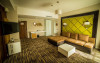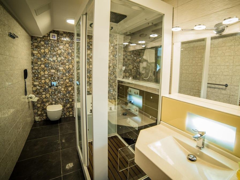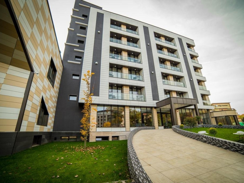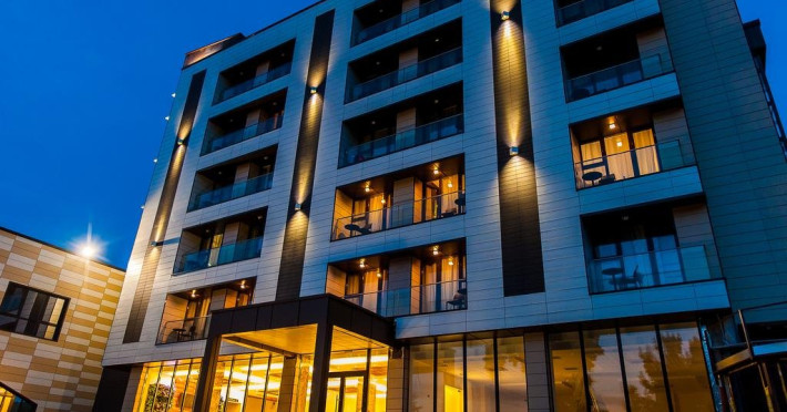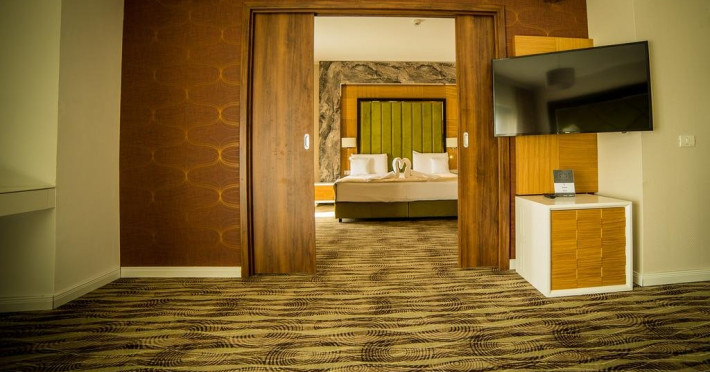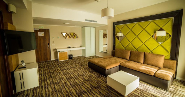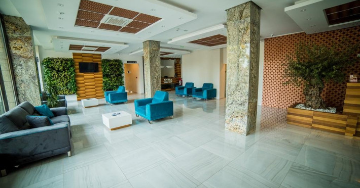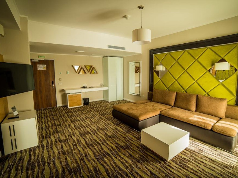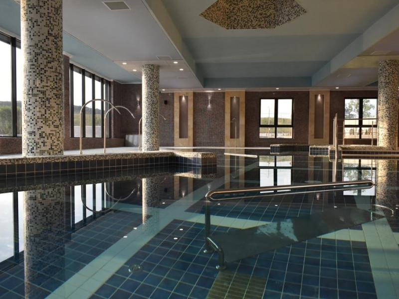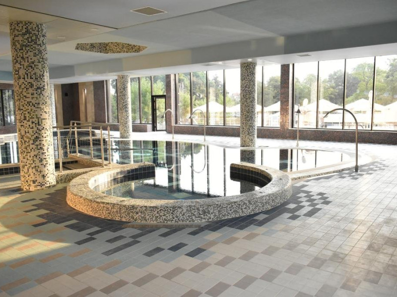 Facilitati SPA: piscina interioara si una exterioara cu bar integrat, ambele cu apa termala, o zona dedicata pentru servicii SPA, sauna, jacuzzi, salon de masaj, salon de cosmetica si manichiura/pedichiura.