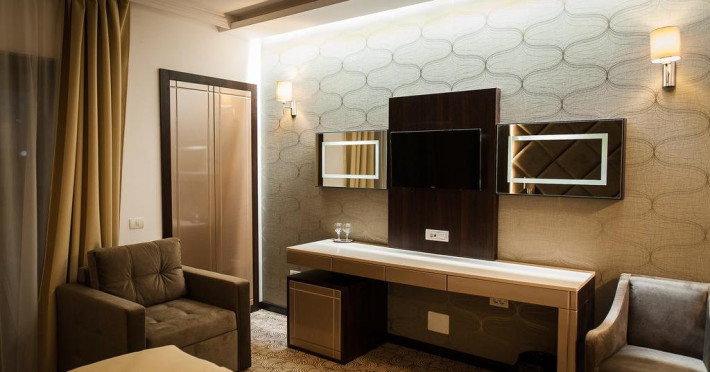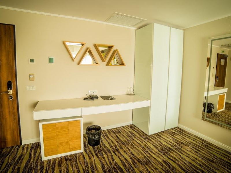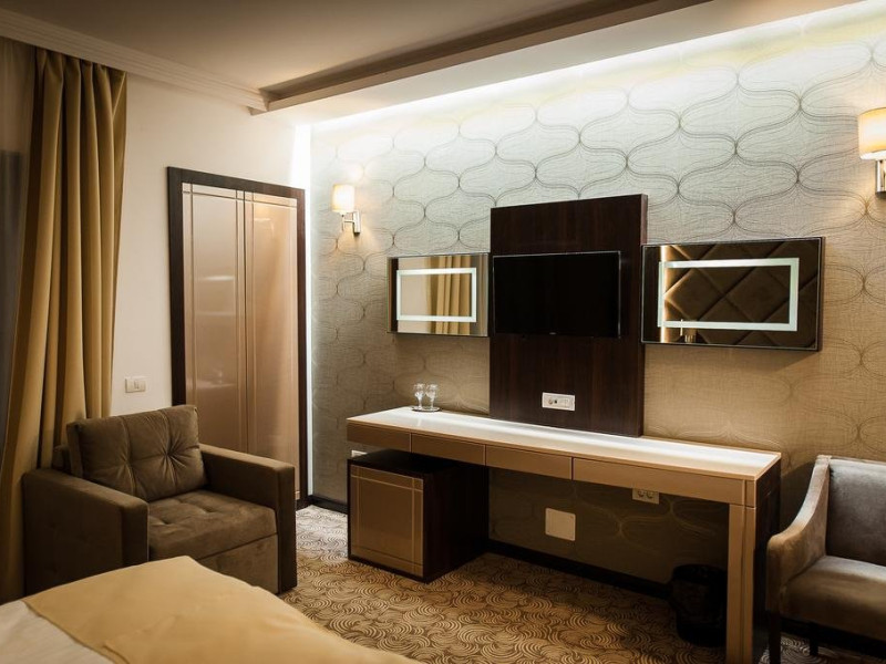 Camere: 50 camere din care 45 duble si 5 apartamente dotate cu A/C, TV si minibar.
