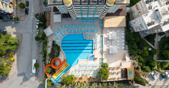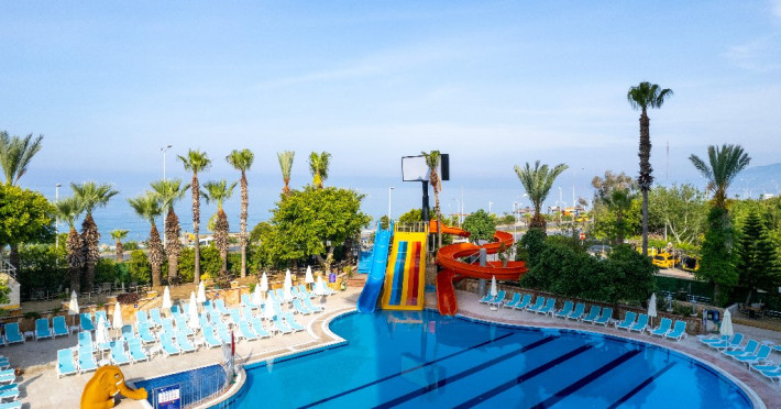Descriere:Hotelul de 5 stele este conectat cu un tunel subteran de plaja din Alanya.