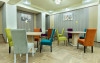 Restaurantul ofera, intr-o ambianta intima si cocheta, o varietate de preparate atat din bucataria locala, cat si din bucataria internationala. Puteti servi un mic dejun sub forma de bufet, iar la pranz si cina puteti alege unul dintre preparatele cu specific international, servite in sistem a la carte.