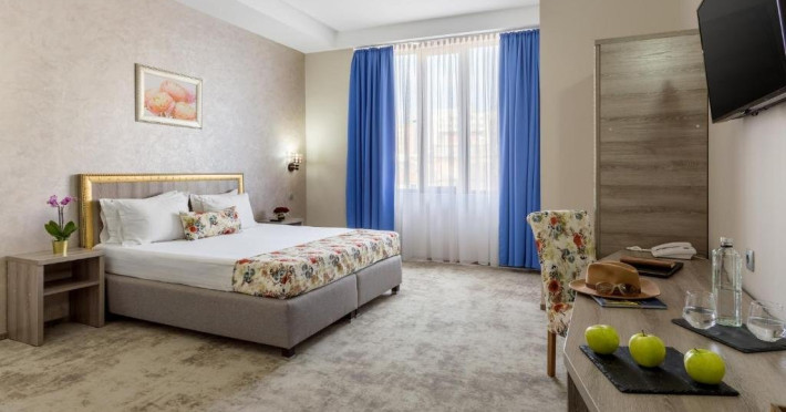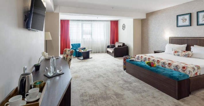 Facilitati camere: internet wi-fi, seif, birou de lucru, minibar, aer confitionat, centrala termica, telefon, tv cu ecran plat si programe prin cablu, radio, papici de baie, halat, uscator de par si prosoape. Toate structurile de cazare dispun de grup sanitar propriu cu cada/dus.
