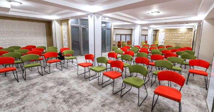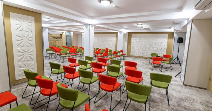 Sala de conferinte cu o capacitate de 90 de locuri, un design modern si creativ, sta la dispozitie cu tot echipamentul de care e nevoie. Personalul nostru este aici pentru a te ajuta cu orice ai nevoie, astfel incat, conferinta ta sa fie organizata intr-un mod profesionist.