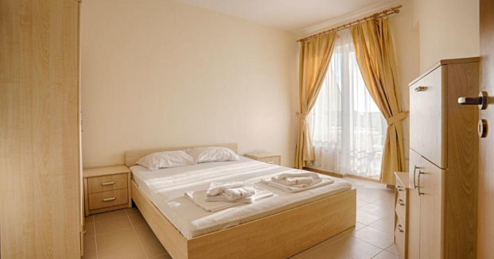 Apartamentele sunt dotate cu chicineta complet echipata (frigider, aragaz-electric, hota, masa cu scaune, vesela), TV satelit, aer conditionat, baie cu cada/ dus, pardoseala-mocheta, balcon/terasa.