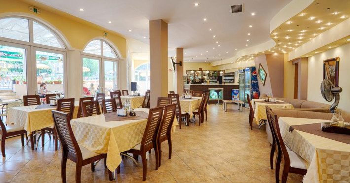 Hotelul ofera receptie, lift, piscina exterioara pentru adulti si copii, loc de joaca pentru copii, restaurant cu terasa, bar la piscina, magazin, Wi-Fi, sezlonguri și umbrele gratuite la piscină, parcare.