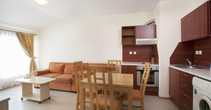 Apartamentele sunt dotate cu chicineta complet echipata (frigider, aragaz-electric, hota, masa cu scaune, vesela), TV satelit, aer conditionat, baie cu cada/ dus, pardoseala-mocheta, balcon/terasa.