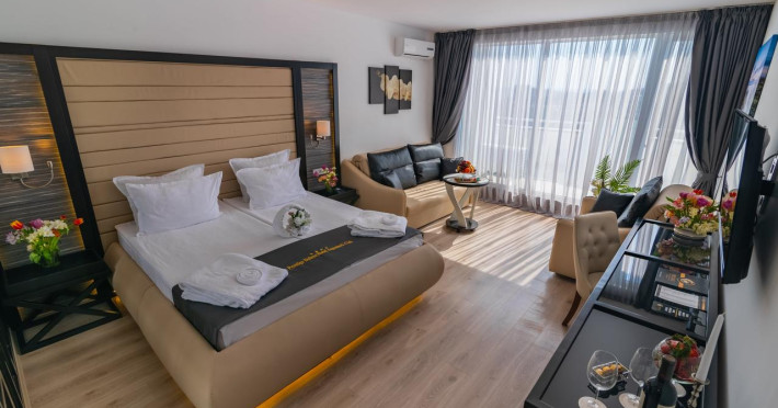 Hotelul Prestige Deluxe Aquapark Club este un hotel nou, modernizat integral in anul 2018 la standarde superioare, ce ofera conditii si facilitati de calitate. Este un hotel apreciat de turistii ce-si doresc o vacanta relaxanta in mijlocul unui parc verde si racoros, aproape de mare.Facilitati camere