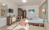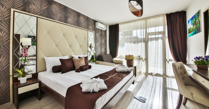 Toate camerele au seif, minibar, fierbator electric,cafea/ceai, WiFi, telefon,TV,aer conditionat, ventilator,baie privata, dus sau cada, uscator de par, fier de calcat (la cerere la receptie), articole de toaleta.