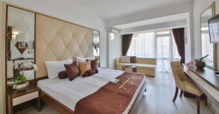 Prestige Hotel and Aquapark se găsește la doar 200 de metri distanță de plaja cu nisip fin, în inima pitorească a stațiunii Nisipurile de Aur. Înconjurat de o atmosferă liniștită și relaxantă, acest hotel este încadrat de frumusețea naturală a vegetației verzi, oferind oaspeților săi o experiență revigorantă și plină de calm.Facilități hotel