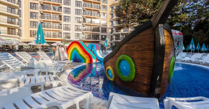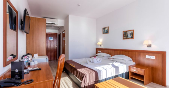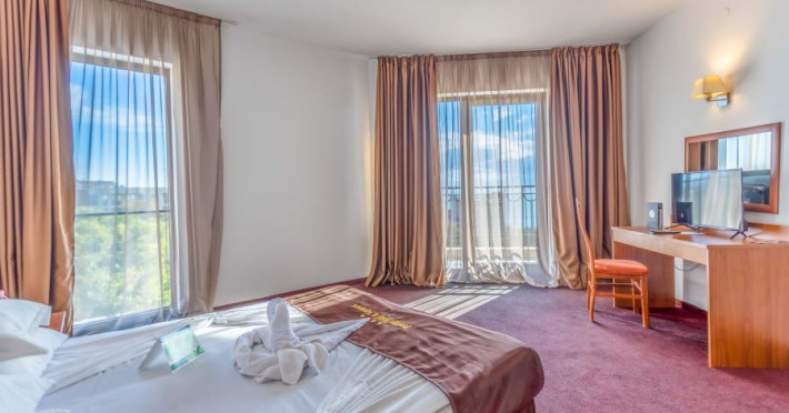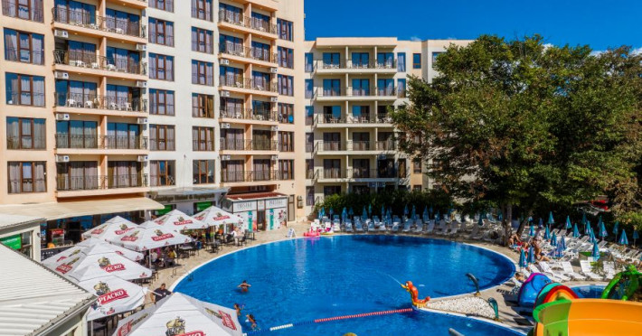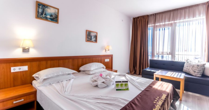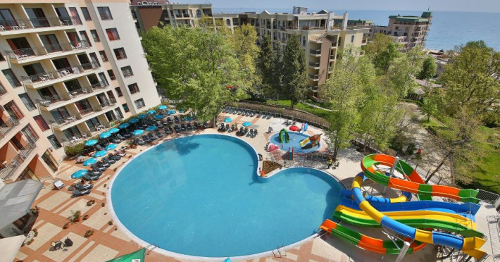 Prestige Hotel & Aquapark 4* este situat la 150 m de centrul statiunii Nisipurile de Aur si la 150 m fata de plaja.