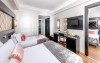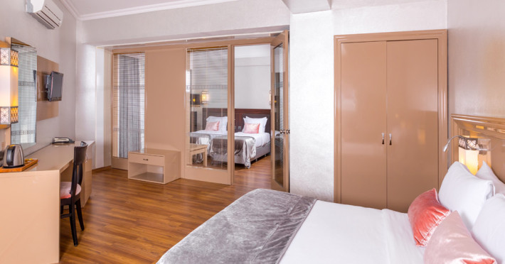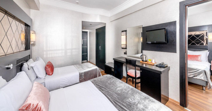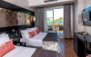 Camerele sunt dotate cu aer conditionat, TV, telefon, minibar. Toate camerele au balcon si vedere spre mare, piscina sau gradina.