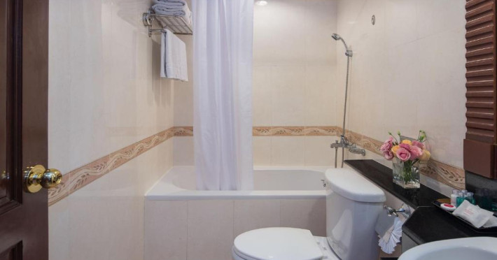 Camerele decorate frumos la Prince Palace au aer și TV prin cablu. Băile moderne includ cadă, articole de toaletă gratuite și papuci.