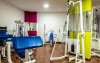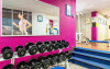 O sală de fitness cu echipamente necesare pentru o gamă variată de exerciții fizice este la dispoziția celor interesați.