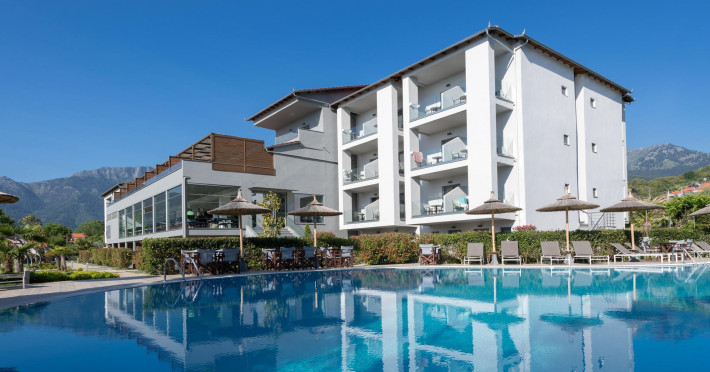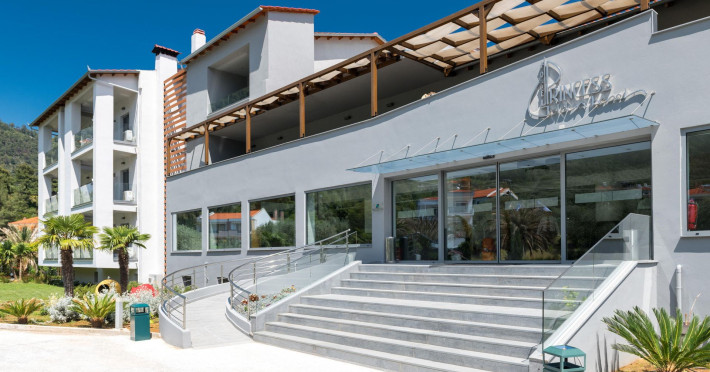 Located on the most ideal place, 50m from the Golden Beach of Thassos, our renovated and refurbished in 2015 Princess Golden Beach Hotel**** , is the first all inclusive hotel in the area. With the view on the incredible background of the mountains and the breathtaking colors of the aegean sea you have the chance to enjoy the hospitality and our excellent service. Princess Golden Beach Hotel**** combines minimal interiors with modern architecture, and highlights the hotelâs unique character through red colors and chic silver. Our intension, to make your holiday in our hotel memorable. Princess Golden Beach Hotel**** consists of 71 rooms in total, newly renovated and refurbished in 2015. The elegant, modern furniture with the clean lines along with the minimalistic decoration of the rooms, are some of the elements which make this hotel unique. Our rooms are divided into three major categories, standard rooms and family rooms and suites.All of the foresaid types of rooms are equipped with the necessary amenities that our guests may need during their stay on the emerald island of the Aegean Sea.Datorita dinamicitatii domeniului disponibilitatea ofertelor se modifica de la un moment la altul. De aceea ofertele sunt valabile in limita locurilor disponibile. Agentia nu este responsabila pentru eventualele neconcordante care pot aparea intre informatiile privind tarifele si alte detalii din site si informatiile primite in agentie. In aceste cazuri vor avea prioritate, intotdeauna, informatiile primite in agentie.