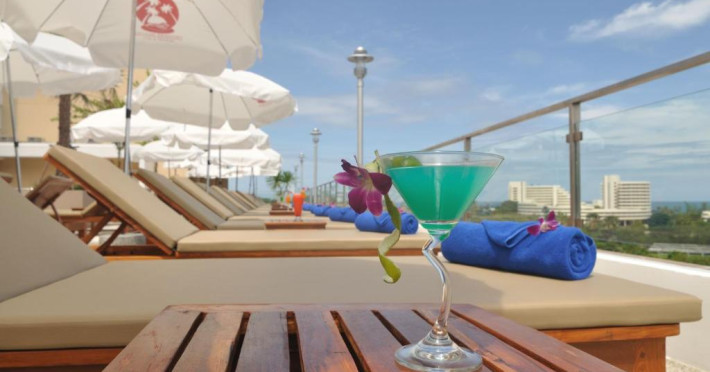 The large outdoor pool is surrounded by sun loungers, where guests can suntan while enjoying a cocktail or burger from the pool bar. For guests' convenience, there is also a fitness centre and laundry services.