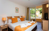 The hotel was built in 1987 and completely renovated in 2002. It is fully air-conditioned and made up of a 9 buildings with 3/4 floors and a total of 351 rooms, of which 200 are doubles and 151 are apartments. There is a spacious landscaped garden with a furnished sun terrace for guests to enjoy as well as a considerable reception hall with lifts, hotel safes, a currency exchange desk and a 24-hour reception. Furthermore there is a games room and a TV room, a café, a few shops, a snug bar and an air-conditioned dining room with a separate non-smoking area (with high chairs available for children upon request). Hotel guests are also free to take advantage of the Internet access, the laundry service, the medical assistance as well as the bicycle hire. Younger guests may enjoy letting off steam in the kids club..The hotel enjoys a peaceful location on the edge of a pine forest. It is a mere 500 metres from an idyllic sandy beach. The copious shops and other entertainment attractions of the resorts centre are in the immediate vicinity and are easily reached on foot..All the en-suite rooms are stylishly furnished and fitted with a telephone, satellite/cable TV, air-conditioned, a safe and a balcony or a terrace..There is a fine buffet available at breakfast and in the evening. It is possible to book a half-board, full-board or all-inclusive stay.MasterCard and VISA are accepted..The hotel has its own indoor swimming pool, a pool with a separate childrens paddling pool, deck chairs and a sauna. In addition activities such as banana boating, water-skiing, diving, pedalos, tennis, table tennis and volleyball are also on offer. The varied organized entertainment programme ensures that guests are never bored.Datorita dinamicitatii domeniului disponibilitatea ofertelor se modifica de la un moment la altul. De aceea ofertele sunt valabile in limita locurilor disponibile. Agentia nu este responsabila pentru eventualele neconcordante care pot aparea intre informatiile privind tarifele si alte detalii din site si informatiile primite in agentie. In aceste cazuri vor avea prioritate, intotdeauna, informatiile primite in agentie.