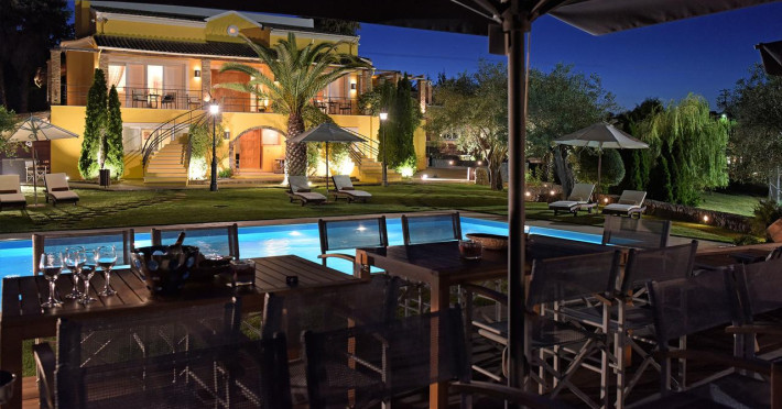 Two beautiful villas in the area of Gouvia that can host a party of 18 guests in total. The villas can be rented together or separately. Villa Privilege Classic is 650m2 and can accommodate a total of 12 guests. Villa Privilege Exclusive is 365m2 and can accommodate a party of 6 guests. Classic Villa Privilege consists of the ground, first and second floor.Ground floor: 2 garages, extensive living-dining room 15m2, fitted kitchen, and 1 twin bedroom, comfortable leather armchairs a place to rest and a bathroom with hydro massage, aromatherapy and color therapy as well as an outdoor swimming pool. First floor: 1 double bedroom 36m2 with a Jacuzzi bathroom 20m2. 1 twin bedroom 20m2 with en suite bathroom, 1 twin bedroom 22m2. All bedrooms face balconies. There is a living room 110sq. m. with a fireplace, a 42’’ plasma TV and a Dolby Surround system. Play station 2 & 3, VCR, DVD, a radio and a CD player. You can enjoy a cup of coffee / tea or a drink at the wonderful veranda.The kitchen is fully equipped with all the electric devices, like a microwave, an oven a dish washer, a washing machine and a drier.Second floor: 2 double bedrooms 36m2 with en suite bathrooms. In each room there is a 21’ TV set – vcr with satellite channels, air conditioning and Wi-Fi.There is also a security system with 16 cameras which controls the whole property as well as a clear glass lift from the garage to the first floor. Villa Privilege Exclusive consists of the ground the first floor. There is a relaxation and exercising room.50 sq. m. relaxing and playroom with table tennis, classic wooden table football.60 sq. m. gym equipped with the most modern exercising equipment from Schwinn USA. Internal heated swimming pool with reverse swimming and Home cinema THX ULTRA 2 Dolby Surround system to relax as you’re watching your favorite movie. Sauna for four people with infrared, a radio, a CD player and color therapy.Bathroom with a hydro massage, a radio and a CD player cabin.If relaxing is more your style, be sure to check out our luxurious spa and spend your afternoon unwinding and relaxing in pure bliss. First Floor: Living room 70 sq/m with fireplace and Lcd 42'' TV, Home Cinema 7.1 thx select 2plus with electrified screen 3m, playstation 2/3 & dvd. 2 bedrooms 25 sq.m. each, with its own Jacuzzi with waterfall for ultimate relaxation. 1 bedroom 20sq.m. with bathroom. There are balconies and a veranda where you can enjoy a meal or a drink.Datorita dinamicitatii domeniului disponibilitatea ofertelor se modifica de la un moment la altul. De aceea ofertele sunt valabile in limita locurilor disponibile. Agentia nu este responsabila pentru eventualele neconcordante care pot aparea intre informatiile privind tarifele si alte detalii din site si informatiile primite in agentie. In aceste cazuri vor avea prioritate, intotdeauna, informatiile primite in agentie.