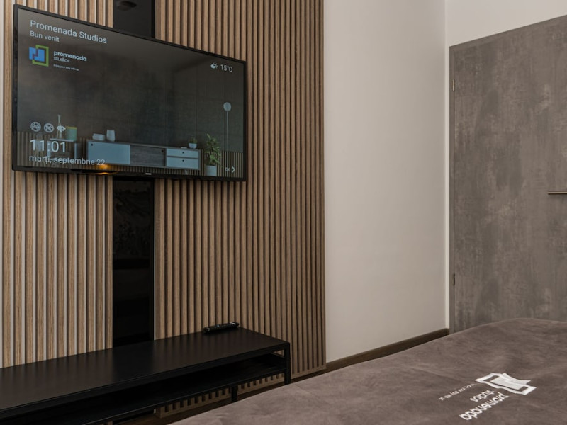 Featuring city views, Promenada Studios in BraÅov provides accommodations and a terrace. This property offers access to a balcony, free private parking, and free Wifi. The accommodation features airport transfers, while a car rental service is also available. At the apartment complex, each unit has air conditioning, a seating area, a flat-screen TV with cable channels, a kitchen, a dining area, a safety deposit box, and a private bathroom with a walk-in shower, slippers, and a hair dryer. A toaster, a fridge, and stovetop are also available, as well as a coffee machine and a kettle. At the apartment complex, units come with bed linen and towels. A mini-market is available at the apartment. Sightseeing tours are available close by. Paradisul Acvatic is 1.9 miles from the apartment, while Council Square is 2.7 miles from the property. The nearest airport is Sibiu International Airport, 89 miles from Promenada Studios.WiFi is available in the hotel rooms and is free of charge. Free private parking is available on site (reservation is not needed). Pets are not allowed. Children of all ages are allowed. Children from 1 to 2 years old stay for free when using an available crib. Children 2 and under stay for free when using an existing bed. Children from 3 to 14 years old stay for 99Â lei per person, per night when using an existing bed. You havent added any extra beds. Any type of extra bed or crib is upon request and needs to be confirmed by management. Additional fees are not calculated automatically in the total cost and will have to be paid for separately during your stay.Checkin Time: 15:00Checkin End Time: 18:00Checkout From: 09:00Checkout End Time: 11:00Hotel important information: This property does not accommodate bachelor(ette) or similar parties. Guests are required to show a photo ID and credit card upon check-in. Please note that all Special Requests are subject to availability and additional charges may apply. In response to the coronavirus (COVID-19), additional safety and sanitation measures are in effect at this property. Please inform Promenada Studios of your expected arrival time in advance. You can use the Special Requests box when booking, or contact the property directly using the contact details in your confirmation. Due to the coronavirus (COVID-19), this property is taking steps to protect the safety of guests and staff. Certain services and amenities may be reduced or unavailable as a result. Due to the coronavirus (COVID-19), this property has reduced reception and service hours. Due to the coronavirus (COVID-19), wearing a face mask is mandatory in all indoor common areas. Its not possible to stay at this property for coronavirus (COVID-19) quarantine purposes. A negative coronavirus (COVID-19) PCR test result is mandatory to check in to this property.Datorita dinamicitatii domeniului disponibilitatea ofertelor se modifica de la un moment la altul. De aceea ofertele sunt valabile in limita locurilor disponibile. Agentia nu este responsabila pentru eventualele neconcordante care pot aparea intre informatiile privind tarifele si alte detalii din site si informatiile primite in agentie. In aceste cazuri vor avea prioritate, intotdeauna, informatiile primite in agentie.