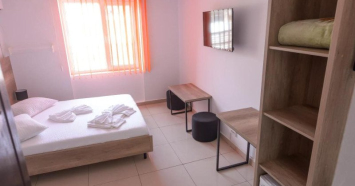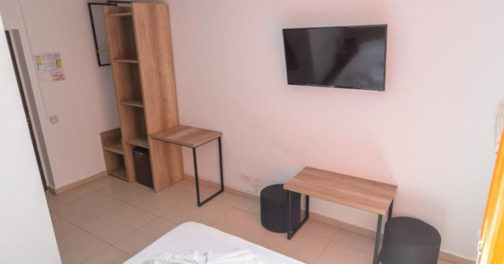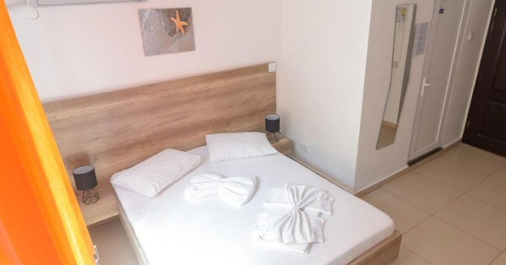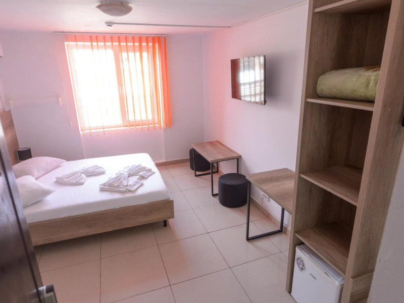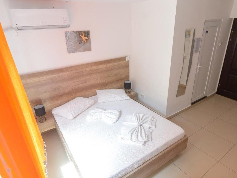 Camerele sunt dotate cu mobilier nou, pat matrimonial (160/200), baie proprie cu dus, AC, TV, minibar, internet.